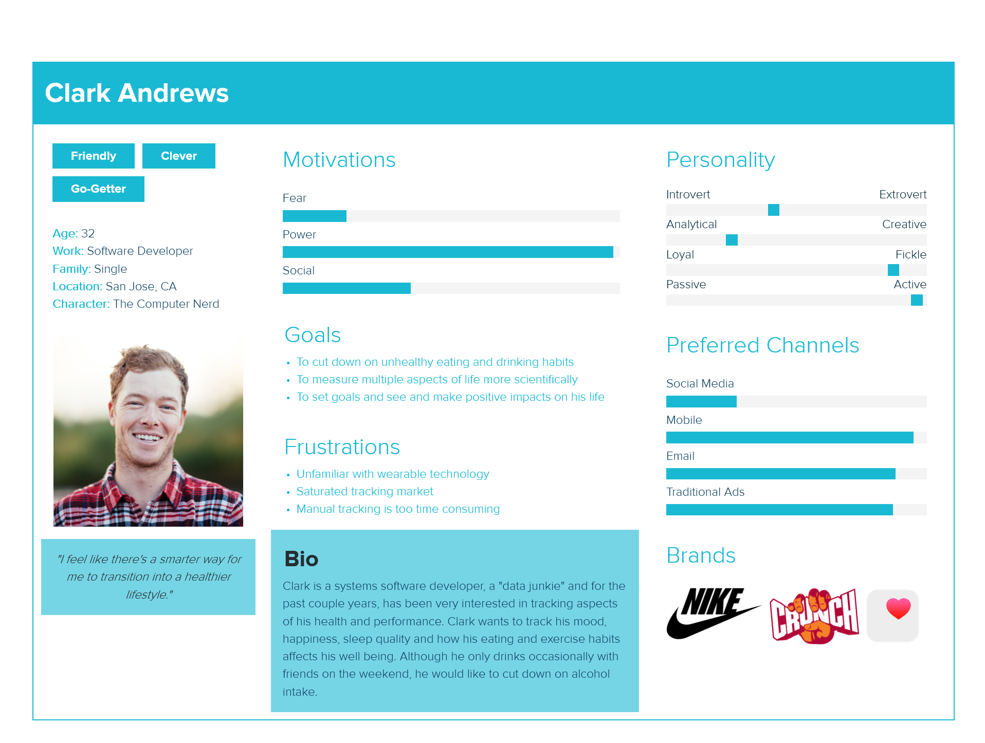 Through the lecture I learnt creating user personas help define the visual and content approach of the interactive product. Artefact personas are created to give context and justify the decisions made for the visual design.